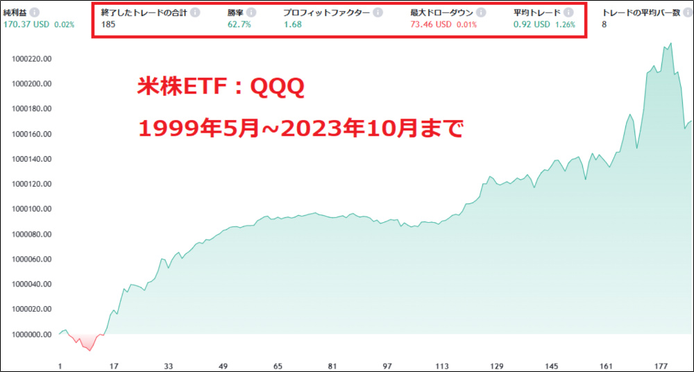 縦軸は1単位当たりの累積損益、横軸は取引回数