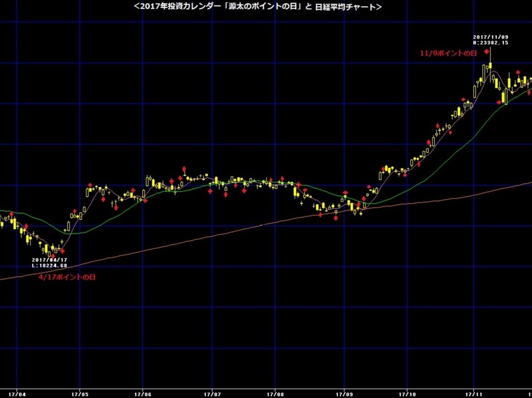 | 源太さんがよく言われる「逆張りカレンダー」として利用しています。核となる株式の売買は、ポイントの日と主要指数平均推移を基準に、自分なりの投資判断を加えて上手くいっています。